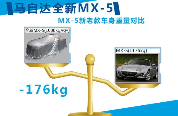 隨著車身輕量化技術的逐漸成熟,目前大多數汽車廠商相應對旗下車型進行了“瘦身”,這一點馬自達自然也不例外,馬自達全新MX-5就是采用了大量的高強度鋼材料,懸掛則采用鋁制配件,這對于車身減重起到了決定性作用,車身重量有原來的1176kg減到了1000kg左右。