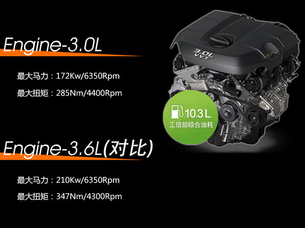 大切諾基3.0新車型搭載的3.0升 V6發動機,與3.6L升V6發動機同屬于“沃德全球十佳”Pentastar發動機家族,是克萊斯勒耗資22億美元打造的動力總成之一。據了解,全新的3.0升發動機繼承3.6升發動機的所有優點,集成了成熟、可靠、耐用、結構合理的核心特性,另外工信部百公里10.3的油耗對于這款豪華SUV而言,表現十分理想。