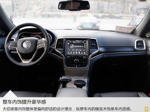 據了解,大切諾基3.0L在內飾用料與配色上可謂十分講究,車輛內飾部分整體顏色以深色為主,這樣的設計使駕駛者在車內擁有駕駛快感。另外全新大切諾基采用橡木實木飾條以及真皮內飾,在擁有運動感的同時,讓乘客擁有極好的乘坐體驗。