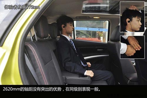 在空間方面,勁炫的表現就比較一般了。前排的乘坐空間還可以接受,185cm的體驗者頭部還能有一拳多的余量,但來到后排,頭部和腿部幾乎都已經沒有空間,也就算是勉強乘坐的水平,舒適度較低。在儲物空間方面勁炫也不夠理想,好在座椅可以完全放倒,靈活性方面還不錯。