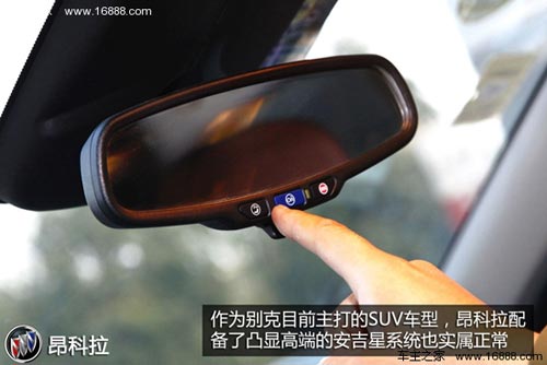 昂科拉的內飾依然給人越級豪華的感受。真皮、木質、鍍鉻、軟質材料的大量使用使昂科拉的內飾感受明顯領先于同級競爭對手,做工細致,用料厚道。炮筒式的儀表很動感,背光采用了別克特有的冰海藍。中控臺的按鍵布局清晰,按鍵的手感出色,但數量較多,剛開始還需要適應一下。在配置上昂科拉的表現也非常出色,包括電動天窗,車身穩定控制系統,藍牙電話等功能都是標配。此外高配車型還有安吉星和倒車影像等非常實用的功能。