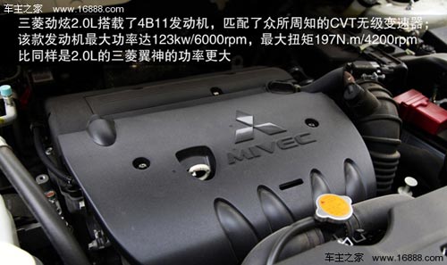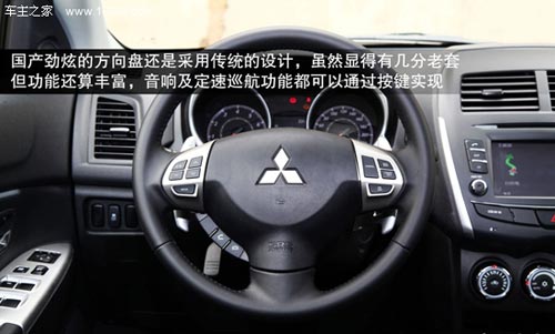 在內飾方面,延續了三菱硬朗的設計風格。一切都已使用為主,看不到太多設計元素。做工用料也都比較普通,屬于及格水平。內飾部分最大的亮點應該要數帶有換擋撥片的三幅運動方向盤了,無論是視覺效果還是手感都很出色,顯示了三菱品牌突出運動基因。在配置方面勁炫的表現還算不錯,在我們推薦的豪華型上,一鍵啟動、天窗、座椅加熱、自動空調都有裝備,只可惜導航和車身穩定控制系統只有在售價20萬左右的更高級車型中才有配備。