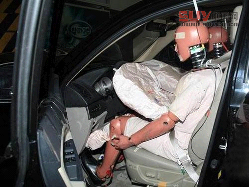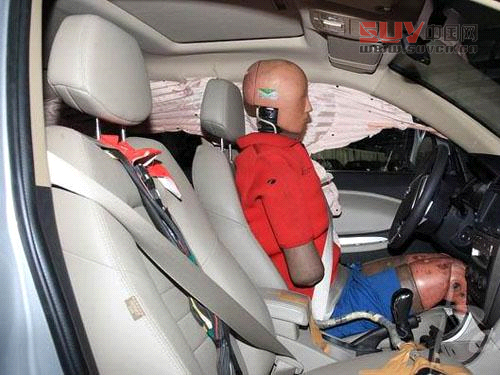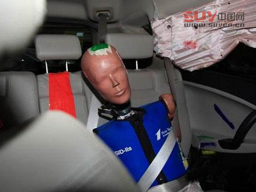 駕駛員假人坐姿基本正常,側氣簾正常打開。