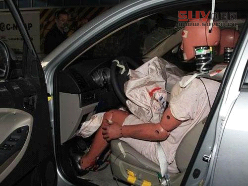 駕駛員側氣簾正常打開,車身受損較為嚴重,B住損傷較小。