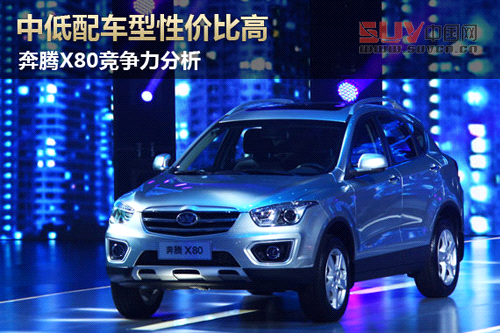 奔騰品牌首款SUV車型X80于5月16日在青島上市,本次推出2.0L與2.3L兩種動力共7款車型,售價為11.98-18.18萬元。奔騰X80是基于奔騰B90平臺研發的一款中型城市SUV,優秀的地盤結構帶來不錯的操控,整車內部空間充裕,配置比較豐富。