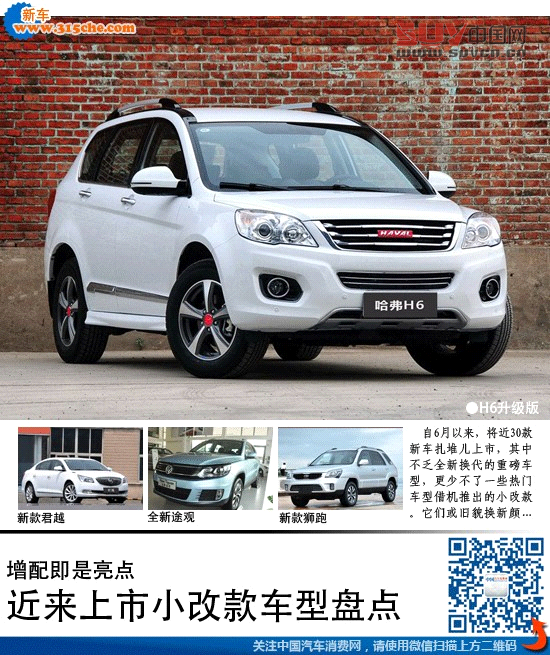 2013年6月17日,哈弗H6升級版悄然上市(上市文章)。新車換上了全新的標識,同時,較老款車型進行了30多項升級(一張圖告訴你H6升級版全部亮點)。主銷1.5T兩驅越野型較老款增加了4000元,售價為11.58萬元。