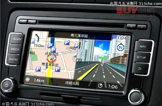 4.6.5寸彩色觸摸屏:導航可顯示路口實景圖,在車輛掛入倒檔后,攝像頭開啟,中控屏幕則顯示倒車影像。