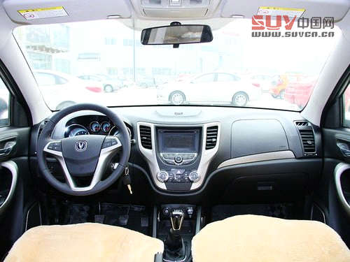 長安CS35的內飾采用了深受年輕人喜愛的整體黑風格,多曲線配合銀色面板的裝飾視覺效果很有立體感,總體造型與長安逸動多少有一些類似。之前試駕長安逸動就能夠明顯感受到工藝上面的提升。