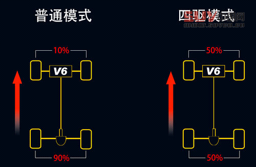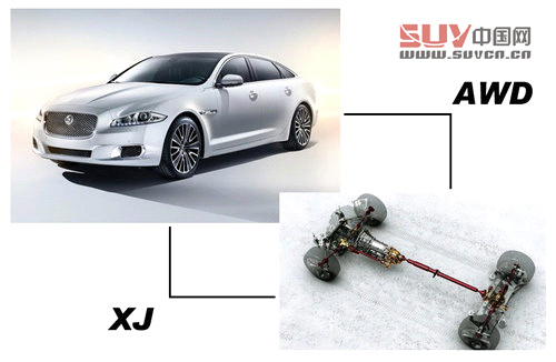 捷豹XJ四驅車型上的AWD適時四驅系統(tǒng)在絕大部分狀態(tài)下屬于后驅模式,前輪只有10%的驅動能力,但在濕滑路面上,由于輪胎的打滑,電腦進行計算后,前后均可有50:50的動力輸出。