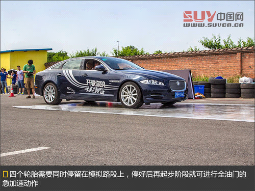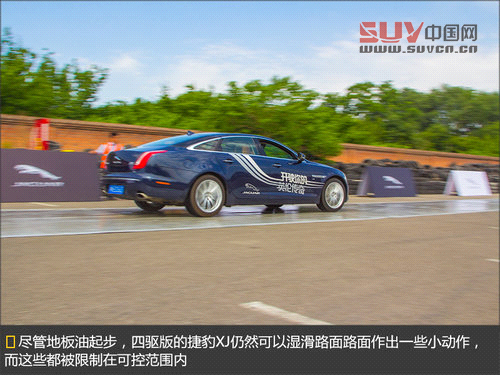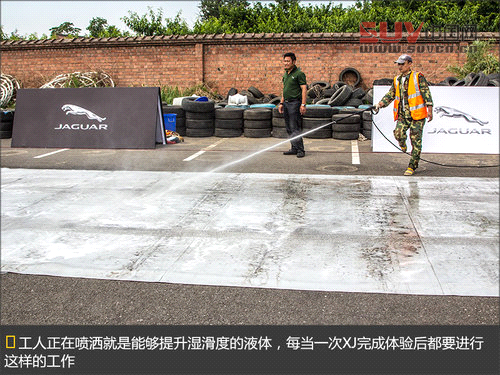 由于夏天的原因,要想體驗出冰面上的所帶來的不同的駕駛感受,主辦方只是采用了一種類似于冰雪路面的模擬路段,它的濕滑程度絕對能讓XJ的四驅系統(tǒng)快速的進入工作模式。