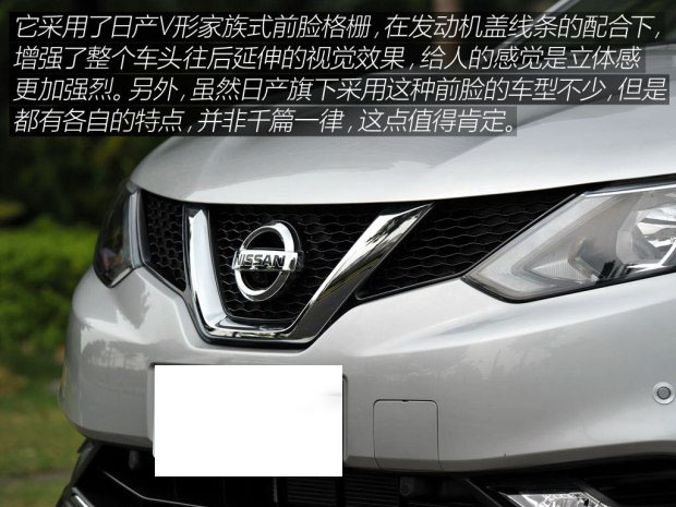 全新逍客采用了日產最新的家族化設計語言,前臉造型和現款奇駿比較相近,“V”字造型中網和犀利的大燈都比較搶眼。新款逍客和現款逍客憨厚敦實的外觀相比,風格大不相同,年輕時尚氣息強了很多。