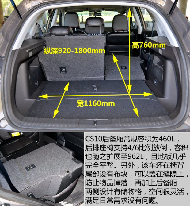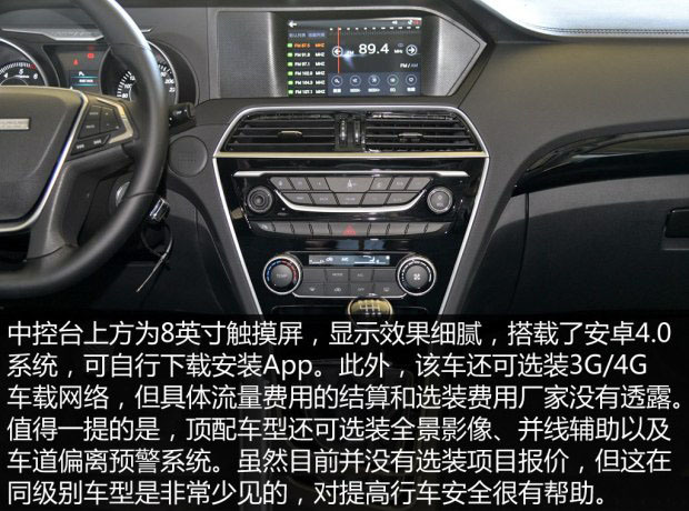 CS10 2.0T 卓越版在配置方面只能說是能夠滿足日常需要。標配了前排氣囊、胎壓監測、前/后駐車雷達、定速巡航、8英寸觸摸屏、電動天窗、皮革座椅、GPS導航以及外后視鏡電動折疊等功能。目前,我們已知的是只有頂配車型擁有車身穩定系統、前排側氣囊和頭部氣囊等安全性配置,但我覺得如果將這些配置能作為選裝件出現在中低配車型上的話,豈不是更好嗎?