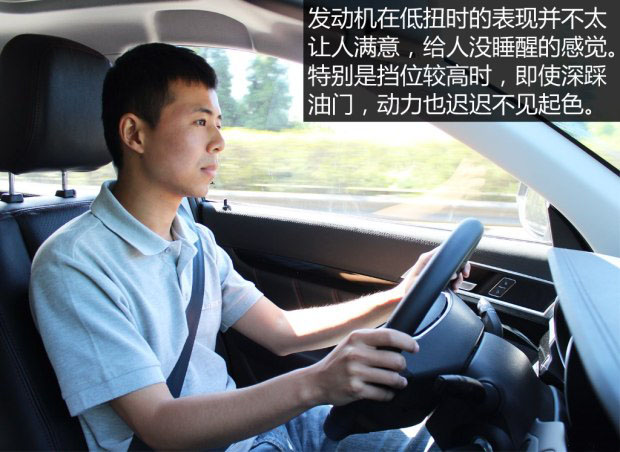 至于發動機動力輸出的表現方面,雖然廠家工作人員表現渦輪在一千多轉時即已經介入工作,在大約2100rpm時可輸出80%左右的最大扭矩,到2400rpm之后則為100%的最大扭矩輸出。但在實際駕駛時,我們幾乎沒有察覺到渦輪的介入,并且低扭的表現也不太讓人滿意,直到發動機轉數達到3000rpm時動力才開始對油門踏板的深度產生回應。好在我們的試駕車是手動擋車型,在稍微適應之后,我們便可以通過人為控制擋位的方式,讓發動機處于最佳運行狀態從而保證所需要的動力輸出。