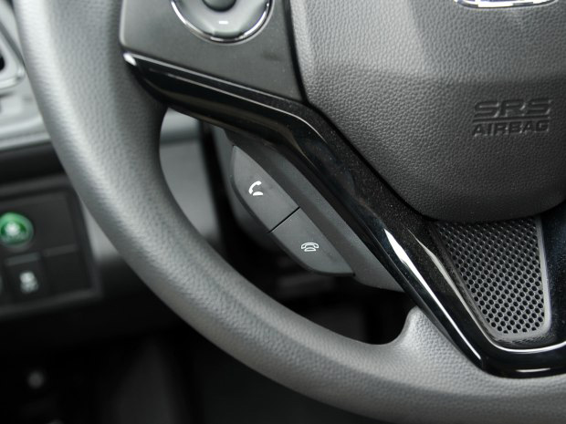 多功能真皮方向盤大小適中,手感也較為細膩。功能方面,它支持四向調節,上面還集成了音響控制以及藍牙電話功能按鍵,便于駕駛員操作。