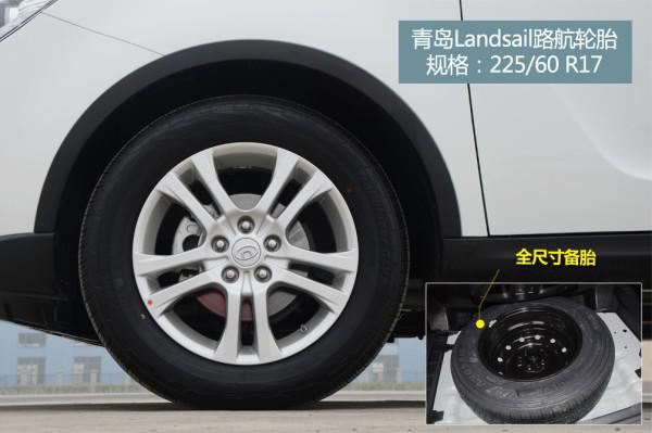 新圣達菲配備的是青島Landsail路航輪胎,比較少見的品牌,規格是225/60 R17。另外,值得一提的是它配備了全尺寸備胎,很厚道。