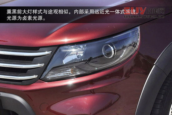 景逸X5是在景逸SUV的基礎(chǔ)上研發(fā)而來,流暢剛硬的線條顯得強壯有力。大眾家族風格的橫拉式鍍鉻前柵與前大燈完美融合,充滿力量感,又不失時尚。熏黑前大燈樣式與途觀相似,內(nèi)部采用遠近光一體式透鏡,光源為鹵素光源。中網(wǎng)下方黑色塑料包圍和銀色下護板的經(jīng)典搭配彰顯了SUV的風格。圓圓的霧燈搭配凹凸有致的燈罩看起來十分霸氣。