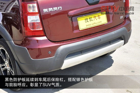 尾部依舊保持著景逸的家族風格,但細節(jié)處的更改加強了SUV的韻味。尾燈采用垂直設(shè)計,非常醒目,內(nèi)部使用LED光源,夜晚點亮后效果十分出色。黑色防護板延續(xù)到車尾后保險杠,搭配銀色護板與前臉呼應,彰顯了SUV氣質(zhì)。