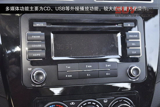 多媒體功能主要為CD、USB等外接播放功能,全系手動空調(diào)的配置無可厚非,三圓式的操控方式很容易上手。景逸X5配置了USB接口,方便外部音源的接駁。