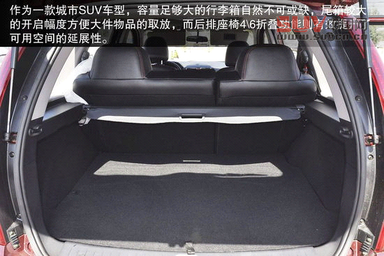 作為一款城市SUV車型,容量足夠大的行李箱自然不可或缺,尾箱較大的開啟幅度方便大件物品的取放,而后排座椅4折疊功能則有效提升了可用空間的延展性。