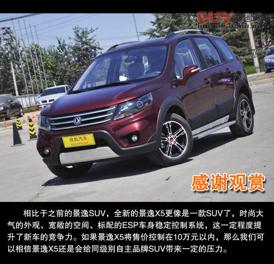 相比于之前的景逸SUV,全新的景逸X5更像是一款SUV了,時尚大氣的外觀、寬敞的空間、標配的ESP車身穩(wěn)定控制系統(tǒng),這一定程度提升了新車的競爭力。如果景逸X5將售價控制在10萬元以內(nèi),那么我們可以相信景逸X5還是會給同級別自主品牌SUV帶來一定的壓力。