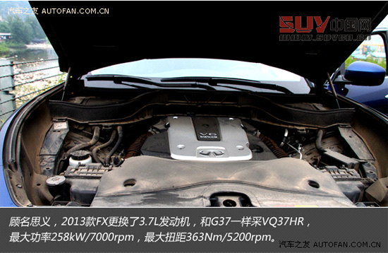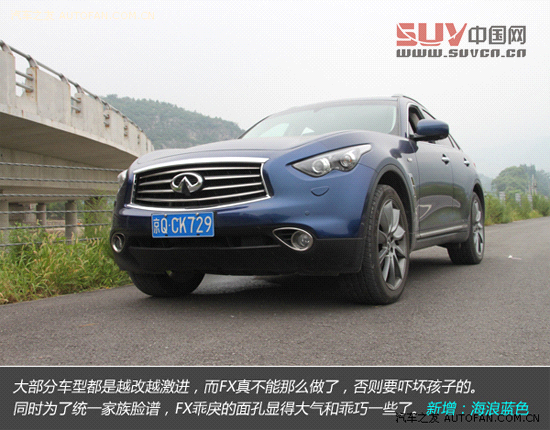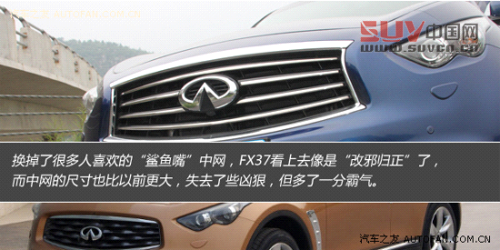 新款英菲尼迪FX37五周年限量版動力方面換裝了3.7L VQ V6發動機并在外觀與內飾、配置上進行了升級。今天我們有幸體驗到了這款車,雖然時間很短,但還是留戀。