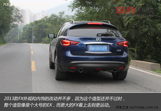 2013款英菲尼迪FX37五周年限量版基本是在普通版的基礎上,以平穩進化的方式完成了這次產品改款。在豪華SUV圈里比起其它競爭對手,英菲尼迪FX37擁有偏執的跑車化駕駛感受,為此它必須犧牲掉部分行駛舒適性和輕松駕駛的體驗作為代價。FX37是需要駕駛者全情投入、認真對待的車,也正因為如此,一旦開過它之后,再開別的SUV就會感覺不夠順手,不夠盡興。