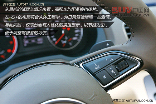 可以說它跟進口版最大的差別就是——輕。油門力度輕,剎車力度輕,轉向力度也很輕,這種變化一下就會被捕捉到,似乎與它緊湊的車身剛度有些格格不入。不過這樣的調教一樣可以贏得市場,畢竟很多女性反映原來的奧迪太過沉重,手無縛雞之力的她們不想用這種方式減肥。更讓人意外的是懸架的調教也更偏向舒適,雖然在日常公路行駛時舒適性有了提升,符合手無縛雞之力者們的需求,但是這也造成了懸架對于車身的支撐稍顯欠缺,操控性有些折扣了。