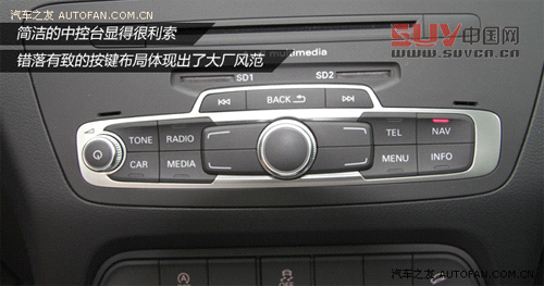 因為Quattro早已成為商標,它不代表托森差速器和機械傳動機構,所以沒比較糾結奧迪在Q3上做文字游戲。固然,這套Q3的四驅并不是與Q5和Q7一樣的托森版,而只是途觀版,中央差速器采用多片離合器形式,這對于一款基于前驅橫置發動機的城市SUV無可厚非,不要奢望它的越野性能,只是四驅結構能讓車輛在高速穩定性上有所保證。如果你說這種結構式妥協我并不同意,首先奧迪在技術上很強勢,不會因為成本或者消費習慣而妥協,其次,橫置發動機對于托森來說并不匹配,又不要求太過分的越野性能,這樣的結構保證了通過性又能減輕重量,何樂而不為,還是那句話,它是Q3,不是越野車。