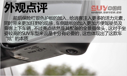 外觀(guān)點(diǎn)評(píng):前后保險(xiǎn)杠銀色護(hù)板的加入,給逍客注入更多的活力元素,同時(shí)帶來(lái)更加狂野的觀(guān)感,車(chē)側(cè)踏板的加入更加方便駕駛員及乘客上下車(chē)輛,不過(guò)亮點(diǎn)依然是其配備的全景攝像頭,這對(duì)于坐姿較高的SUV車(chē)型來(lái)說(shuō)是十分有必要的,這也體現(xiàn)出了這款車(chē)“炫”的本質(zhì)。