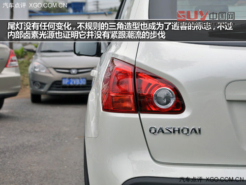 車(chē)頂?shù)男_流板集成了高位剎車(chē)燈,為逍客的車(chē)尾帶來(lái)一絲活力,尾燈沒(méi)有任何變化,不規(guī)則的三角造型也成為了逍客的標(biāo)志,不過(guò)內(nèi)部鹵素光源也證明它并沒(méi)有緊跟潮流的步伐。