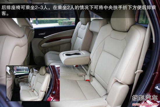 第二排空間同樣十分充裕,在前排座椅正常距離的情況下,體驗者腿部距離前排座椅椅背尚有兩拳距離,而頭部也有一拳距離。而座椅中央可折疊的中央扶手可供后排乘客放置水杯。另外值得一提的是,全新謳歌MDX的第二排座椅可以提供50mm的智能滑動功能,方便第三排乘客出入。