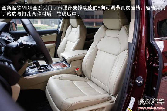 全新謳歌MDX全系采用了帶腰部支撐功能的8向可調(diào)節(jié)真皮座椅,座椅采用了站皮與打孔兩種材質(zhì),軟硬適中。