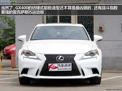 全新造型的紡錘形前臉進氣格柵極具兇狠,寬度極厚的車頭搭配這款進氣格柵顯得非常具有攻擊性。回過頭來再看看老款GX400的車頭造型,您就知道變化有多么的夸張了。更加夸張的是,GX400的紡錘式前臉造型還不算是最兇狠的,還有戰斗指數更強的雷克薩斯IS運動版。
