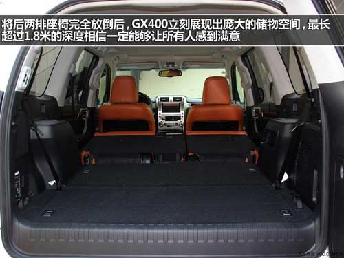 將后兩排座椅完全放倒后,GX400立刻展現出龐大的儲物空間,最長超過1.8米的深度相信一定能夠讓所有人感到滿意。
