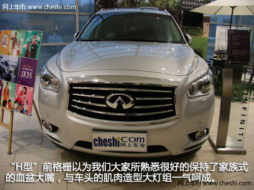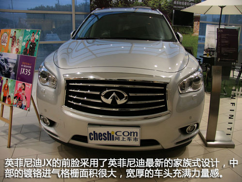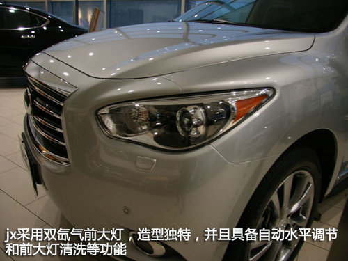 作為豪華品牌中較為“年青”的一員,英菲尼迪可謂是厚積薄發(fā),尤其是以ex、fx、qx組成的suv團隊在豪華suv市場上更是披荊斬棘保持著良好的上升趨勢。而最新推出的豪華7座suv——jx35進一步豐富其產(chǎn)品線,更使得其suv團隊更加的強大。近日,編輯走訪了西安英菲尼迪的經(jīng)銷商,為大家?guī)砹擞⒎颇岬螶X35的詳解實拍。