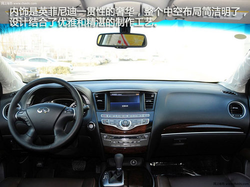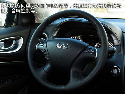 內(nèi)飾是英菲尼迪一貫性的奢華,整個中空布局簡潔明了,設(shè)計結(jié)合了優(yōu)雅和精湛的制作工藝,內(nèi)飾細膩的真皮材質(zhì),觸感一流,深色的楓木飾板打造出濃重的家居風(fēng)格,具有很強的親和力。