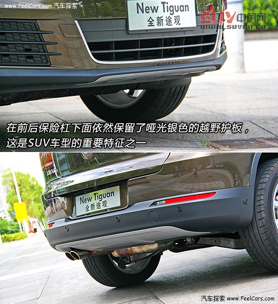 在前后保險杠下面依然保留了啞光銀色的越野護板,這是SUV車型的重要特征之一。