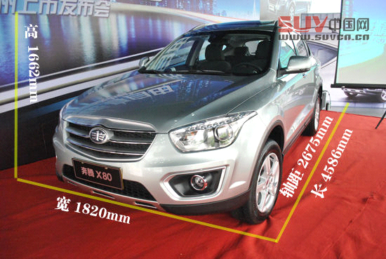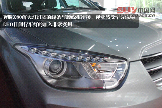 奔騰X80的車身尺寸為4586/1820/1662mm,其軸距為2675mm,與最近炒得火熱的陸風(fēng)X5較為接近。高配車型的前大燈組將集成LED日間行車燈,眉眼更為銳利,中網(wǎng)鍍鉻條更為粗壯,同時保險杠上配置了大燈清洗裝置。