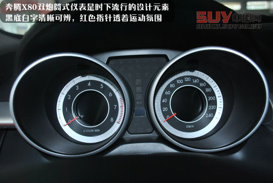 雙炮筒式儀表是時下流行的設(shè)計元素,黑底白字清晰可辨,紅色指針透著運(yùn)動氛圍。