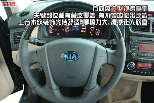 方向盤頂端部分的木紋裝飾讓小編頗感欣喜,光潔的表面,握感很棒,視覺效果很很不錯。不知道長期駕車的時候手掌出汗后,握感還能否一如既往地好。方向盤并未設置眾多復雜的按鈕,這是個小小的遺憾。