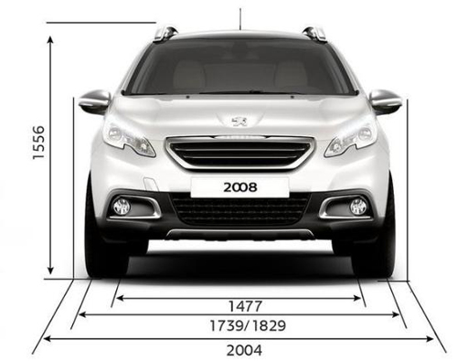 標致2008軸距2538mm,剛好介于翼博和昂科拉之間。而車身尺寸方面,標致2008長寬高分別是4159/1739/1556mm,在長度和高度比兩個競爭對手要低一點。不過離地間隙仍然達到了165mm,比一般轎車高出了不少。