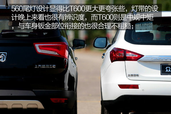 車尾風格相比較之下,寶駿560要略微高一些,這也就直接看出了其底盤結構源自商務車,所以對于按照成熟SUV設計思路來打造的眾泰T600來說絕無可比性。
