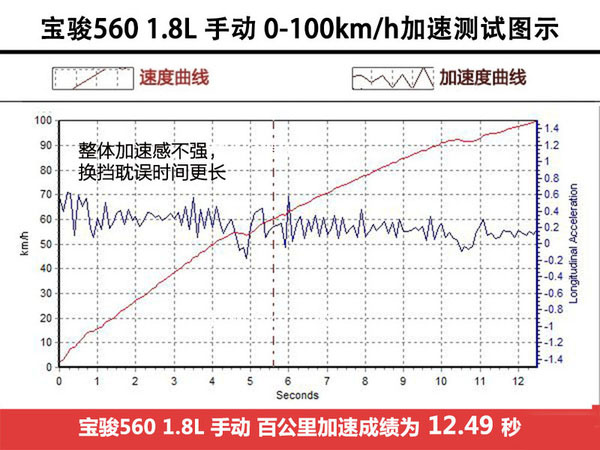 寶駿560:0-100km/h加速測試