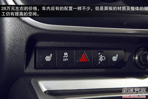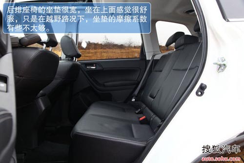 乘坐空間方面基本夠用,坐入車內(nèi),較高的中控臺加之小尺寸的風擋并沒有給人帶來SUV車型普遍的寬敞視野,不過卻有著很強的包裹感,整體給人感覺是輛不折不扣的硬派車型,很安全。實際的乘坐空間基本夠用,但由于后排中部的高地臺和杯架,使得其后排中部乘客的舒適性大打折扣。
