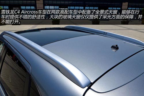雖然雪鐵龍C4 Aircross的中控沒有太多亮點,但是車廂內(nèi)有一個配置不得不提,那就是頭燈上的全景天窗,雪鐵龍C4 Aircross天窗面積足夠大,一直延伸至第二排的頭頂,無論是坐在前排還是后排,給人的感覺都是非常通透的。