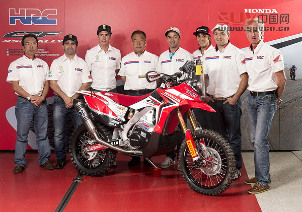 而面對還有一陣子才開幕的2014年達喀爾拉力賽,TeamHRC似乎打算提前開始準備2014賽季的比賽,并且宣布了參賽的車隊組織機構。在新年度的賽季中本田將會投入五位車手,包括HelderRodrigues(葡萄牙籍,34歲)、SamSunderland(英國籍,24歲)、JavierPizzolito(阿根廷籍,33歲)、JoanBarreda(西班牙籍,29歲),以及PauloGoncalves(葡萄牙籍,34歲),在今年的車手陣容當中,HelderRodrigues與JavierPizzolito在去年拿下了第7與第8的排名,SamSunderland則是去年因為受傷而表現不佳。另外兩人則是新人首次參賽。同時在車手們的戰駒將會是預計在9月發表的全新CRF450RALLY。