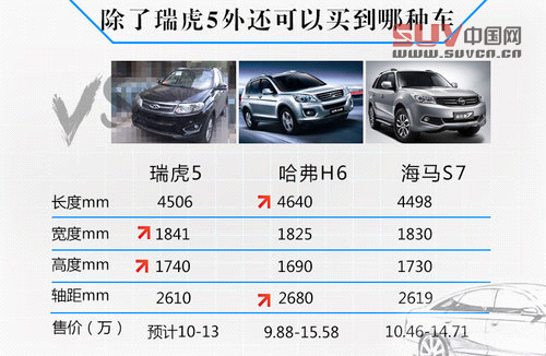 瑞虎5的軸距為2610mm,與其競爭對手哈弗H6的2680mm、海馬S7的2619mm的軸距相比并不占有優(yōu)勢,但整車憑借1841mm的寬度和1740mm的高度同樣可以提升內(nèi)部空間,使乘坐者可以得到更好的乘坐體驗。
