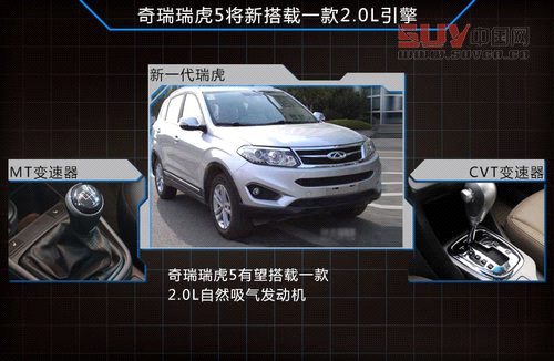 在動力上,瑞虎5搭載了一款2.0L自然吸氣發(fā)動機,與現(xiàn)款瑞虎的2.0L引擎相同,其先期上市將匹配5速手動變速器,在上市后其還將會搭載CVT變速器,給予消費者更多的便捷,同時也豐富了瑞虎5的產(chǎn)品系列。