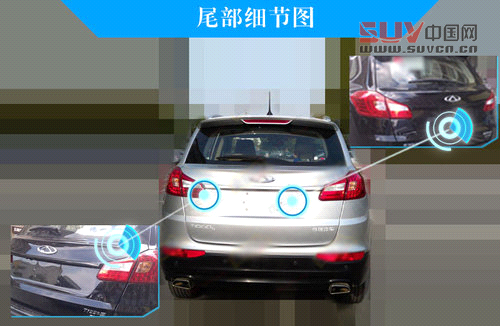 瑞虎5采用了更大面積的進氣格柵,并且用銀色鍍鉻條貫穿中間,十分醒目。前大燈也從倒三角形變?yōu)榱思氶L型結(jié)構(gòu)。在車的尾部,瑞虎5配備了橫向LED燈管后車燈,這與現(xiàn)款的豎直型設計十分不同。此外,新車還取消了后備胎罩,整體風格逐漸向城市SUV靠攏。