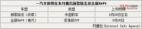 今年下半年將成為一汽豐田推出新車較為密集時期,除了全新威馳會在11月份正式推出外,還有全新換代的RAV4也將在本月正式上市,同時根據此前報道的中期改款銳志而言,近日華北區域銷售總監韓鏑飛也透露:新車的上市日期也將與全新RAV4接近。